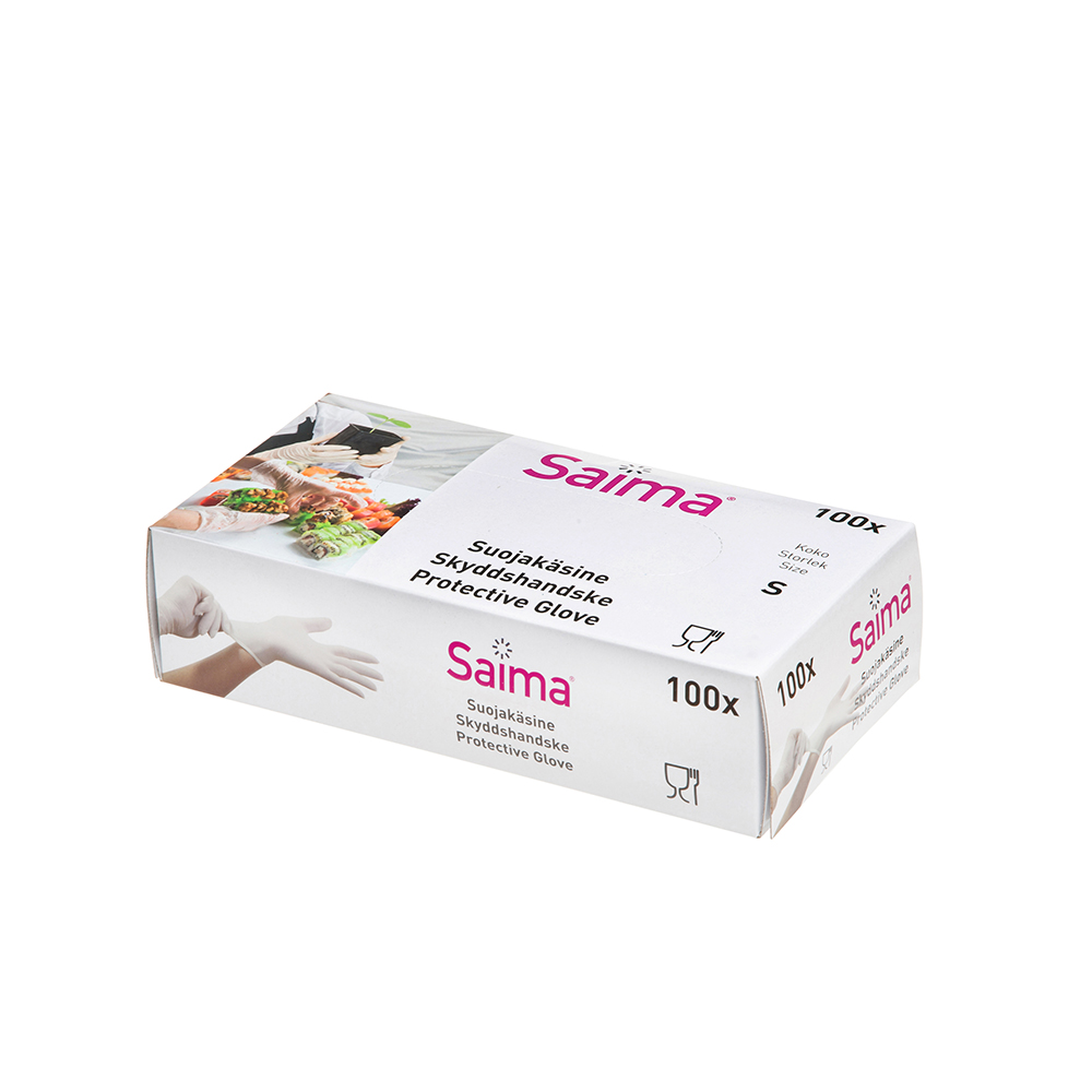 Pirštinės vienkartinės vinilinės be pudros S 100 vnt Saima 215707