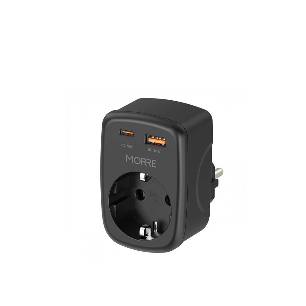 Paskirstytojas srovės viengubas su 2 USB jungtimis MORRE M409