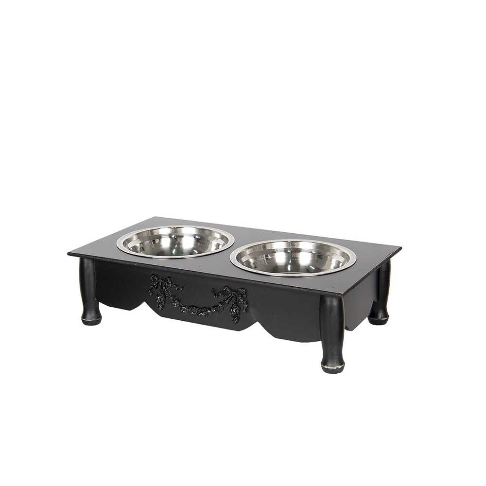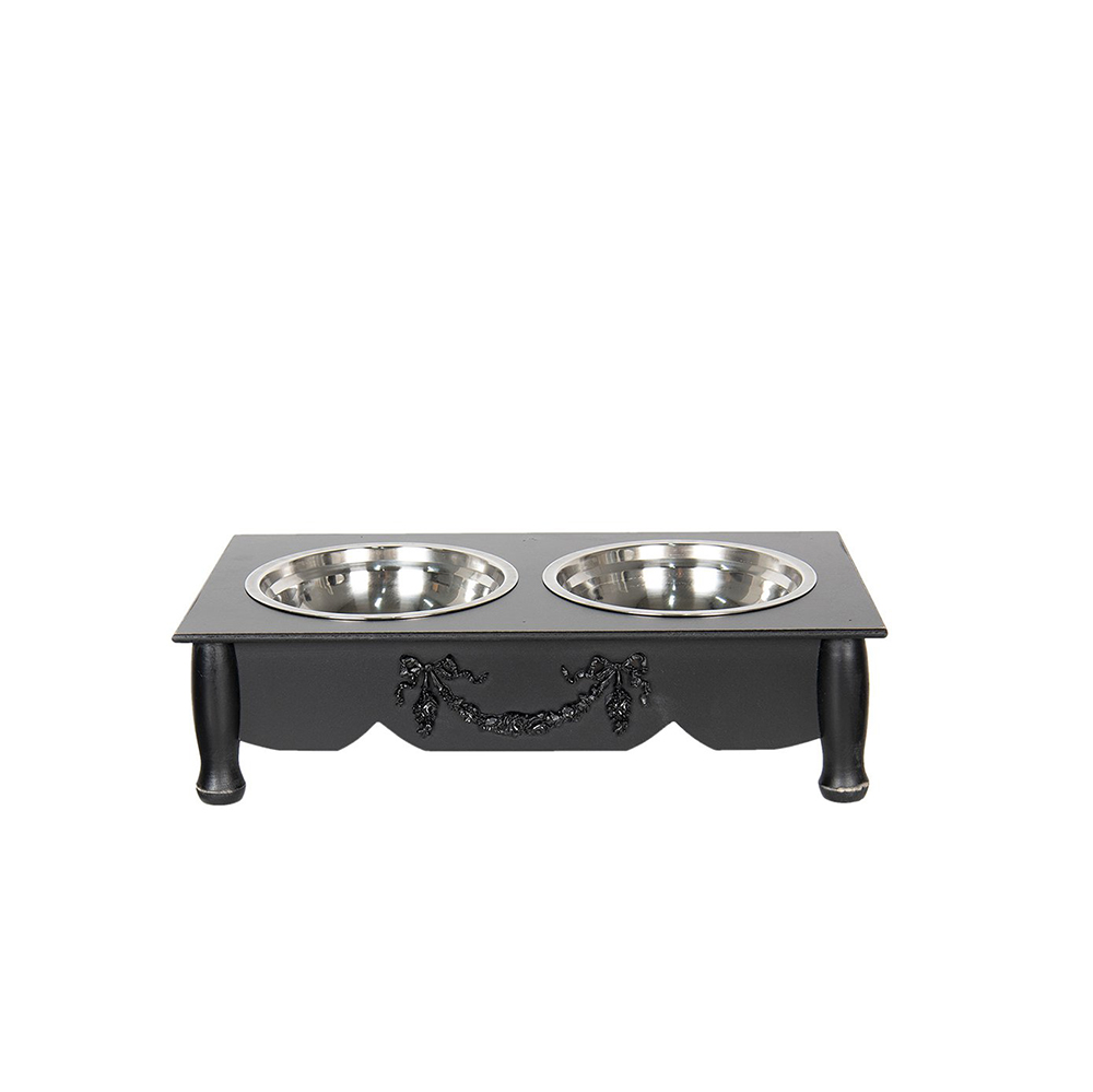 Dubenėlis katei/šuniui dvigubas medinis/metalinis 41x22x12 cm 2x500 ml Clayre