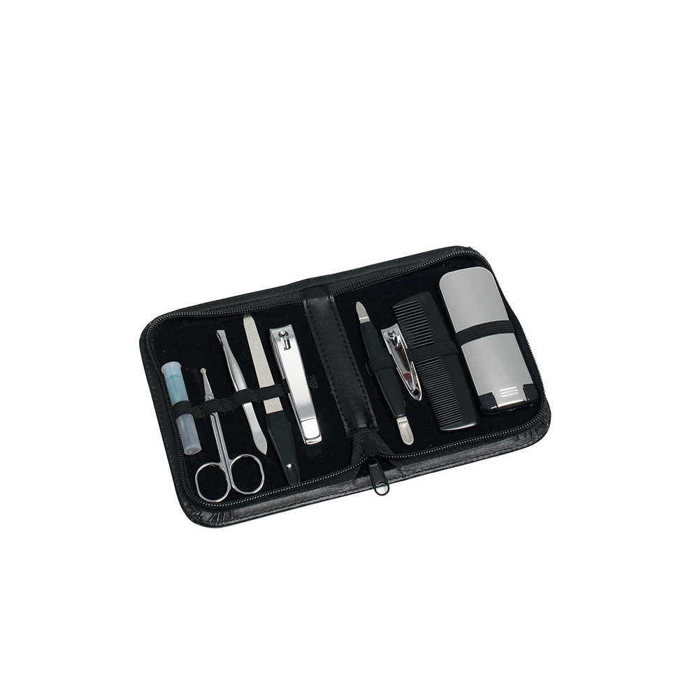 Kompaktiškas manikiūro rinkinys, skirtas nagų priežiūrai namuose ar kelionėje. Visi įrankiai patogiai sudėti į dėklą.