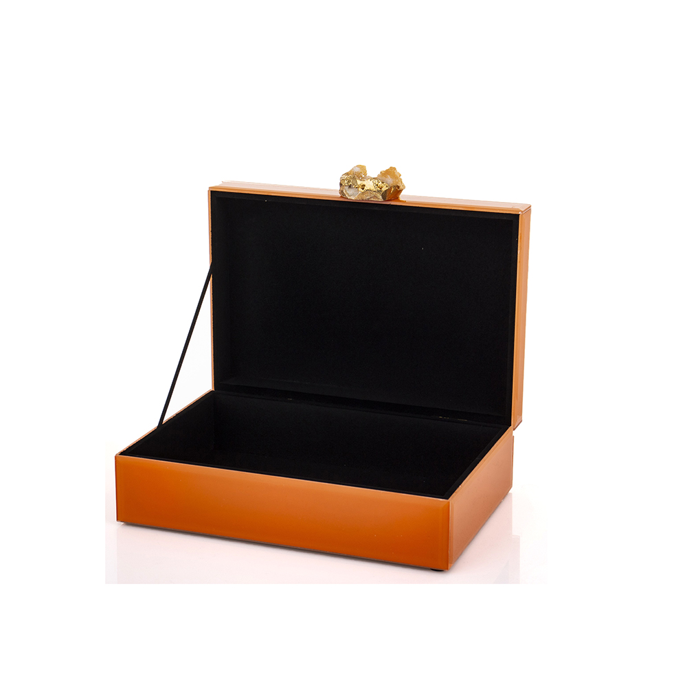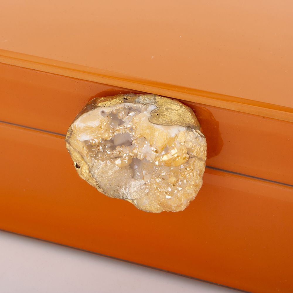Dėžutė papuošalams stiklinė oranžinė su agatu 8x24,5x18,5 cm 179055