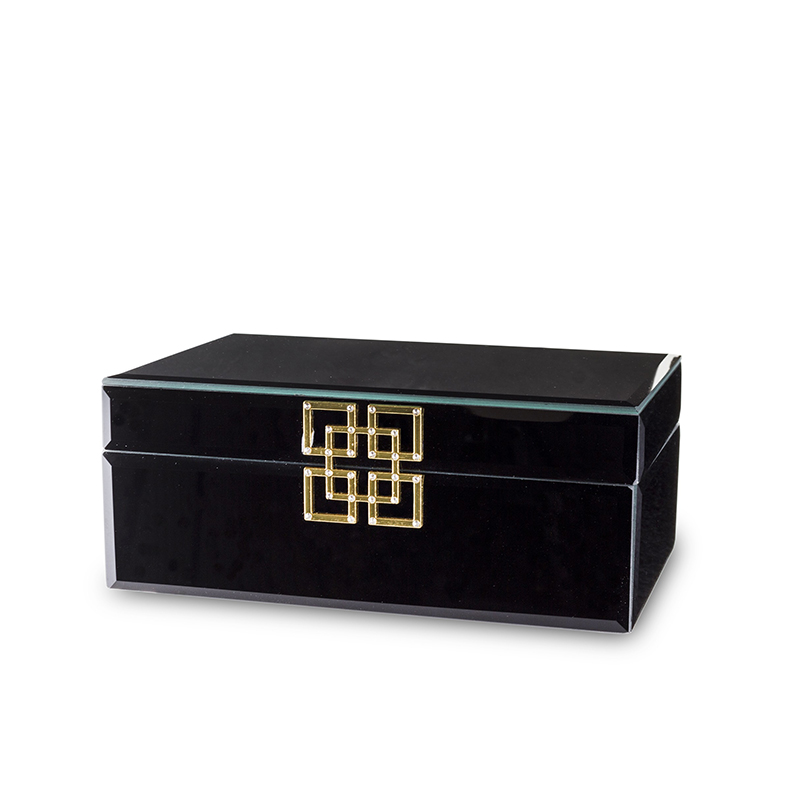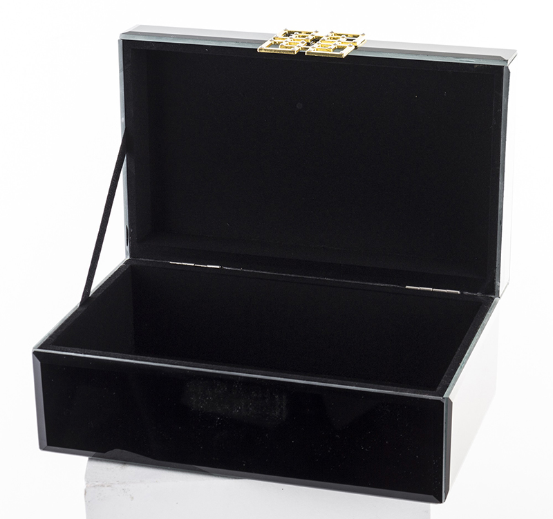 Dėžutė stiklinė juoda su metaline detale 8,5x21x13 cm 142912
