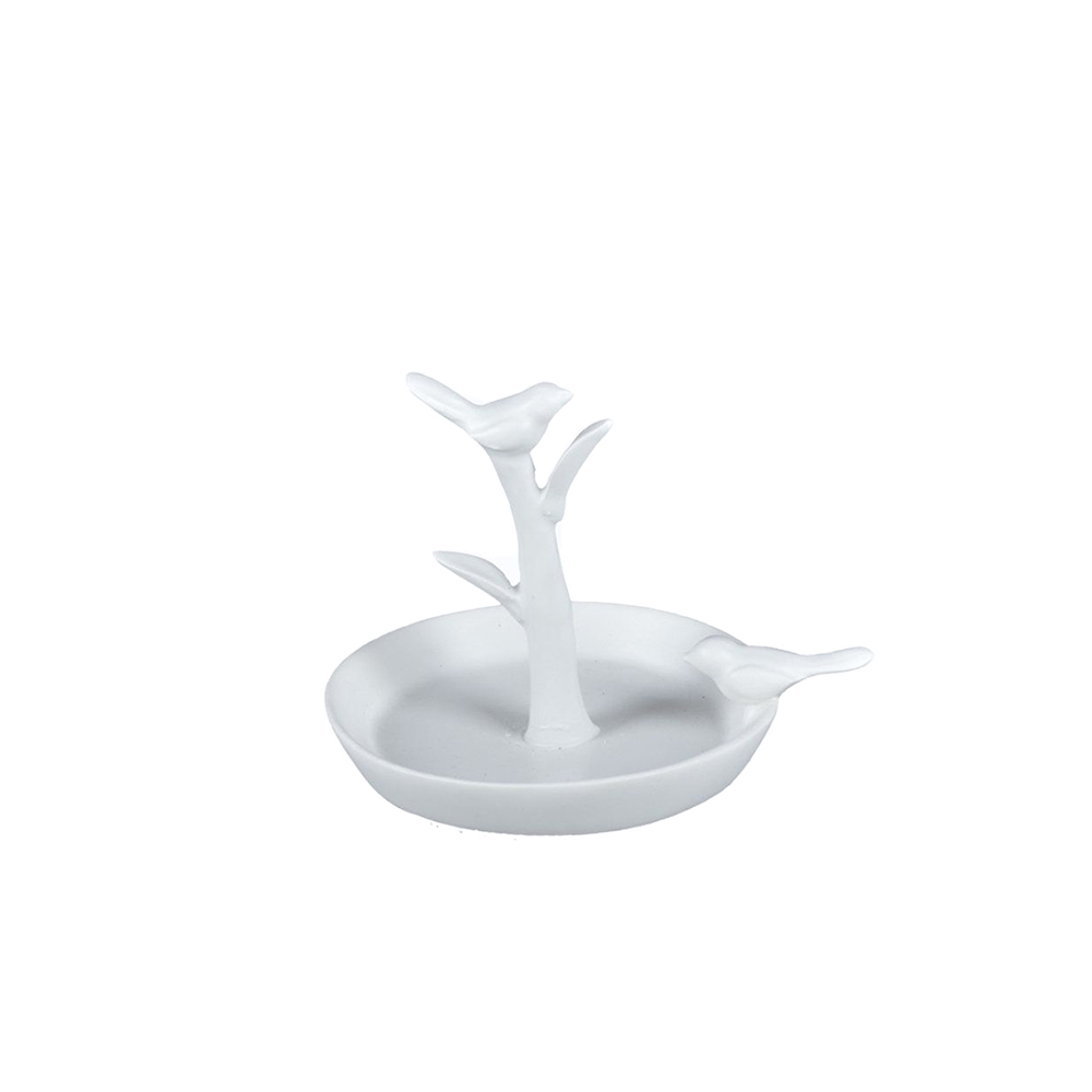 Lėkštelė papuošalams su paukščiais balta polirezininė 11x9x8,5 cm 31452