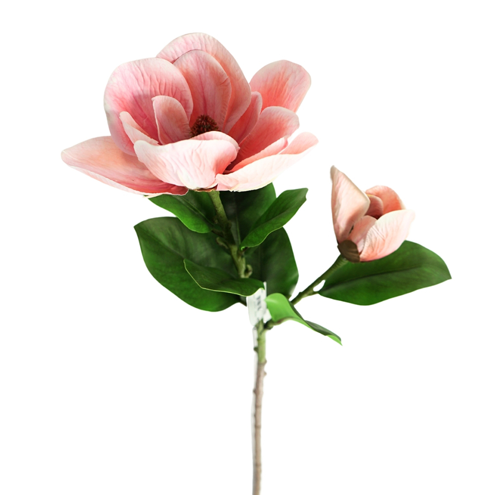 Ši šakota dirbtinė magnolijos gėlė su dviem žiedais spinduliuoja natūralią eleganciją. Realistiškos šakelės ir švelnūs spalvų tonai leidžia ją beveik nesiskirti nuo tikros gėlės. Puikus, priežiūros nereikalaujantis akcentas jūsų namų interjerui.