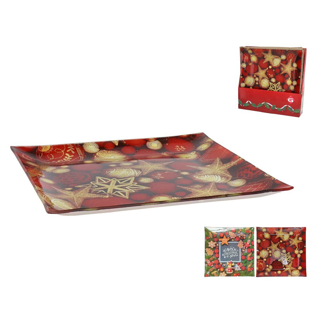 Dekoratyvinis padėklas stiklinis kalėdinis 25 cm (mix 2) 8445393064031 kld