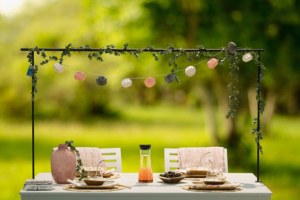 Rėmas stalo dekoracijoms kabinti – paprastas ir stilingas būdas sukurti išskirtinę šventinę stalo kompoziciją. Rėmas montuojamas virš stalo, todėl lengvai pakabinsite mėgstamus papuošimus: girliandas, žibintus, augalus, žaisliukus ar kitus dekorus.