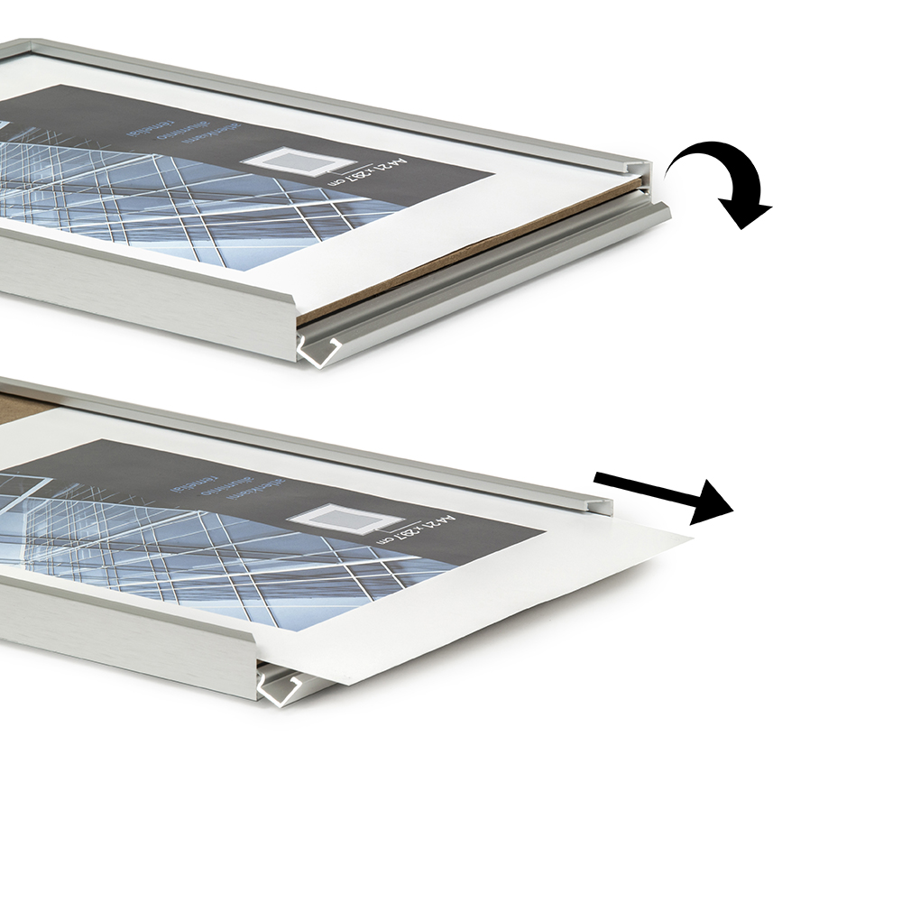Rėmelis ALIUMINIS atidaromas iš viršaus 21*29.7 sidabrinis plexi