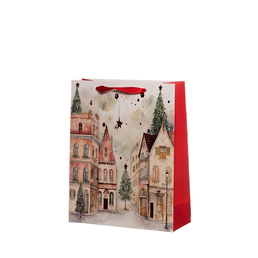 Dovanų maišelis kalėdinis Miestelis 26x10x32 cm (mix) Winteria 651259 KLD