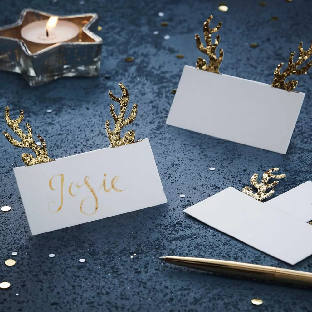 Stalo kortelės su bizgančiais elnio ragais 10 vnt 8,5x7,5 cm Ginger Ray 123513