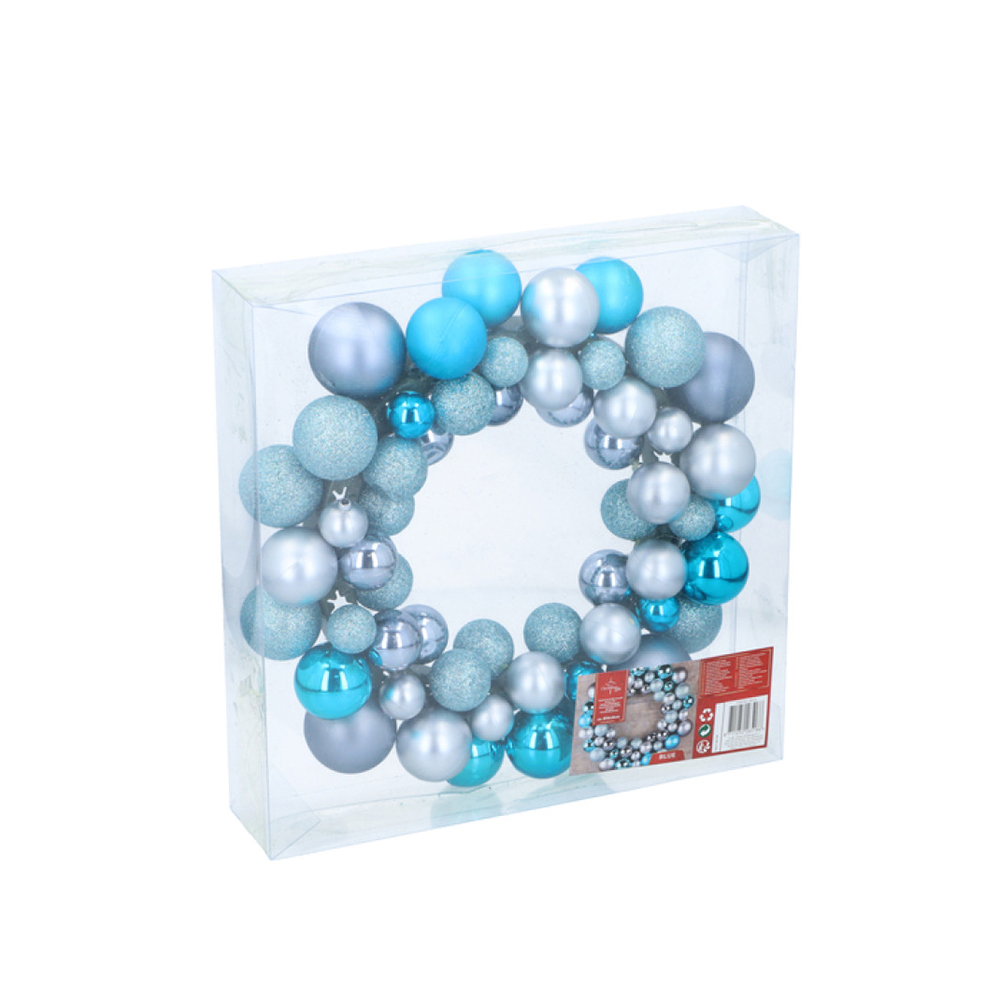 Vainikas iš kalėdinių burbulų 55 vnt. D36x8 cm mėlynos sp. 871125226518 KLD