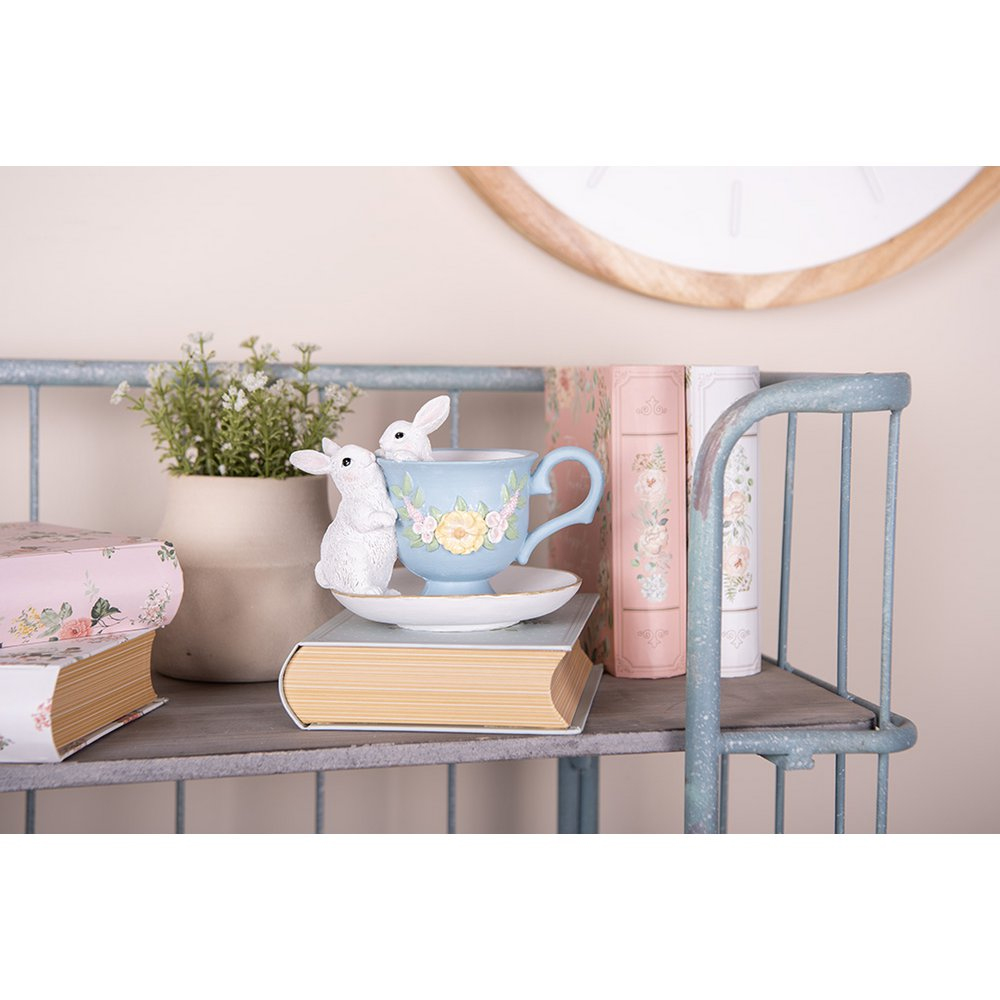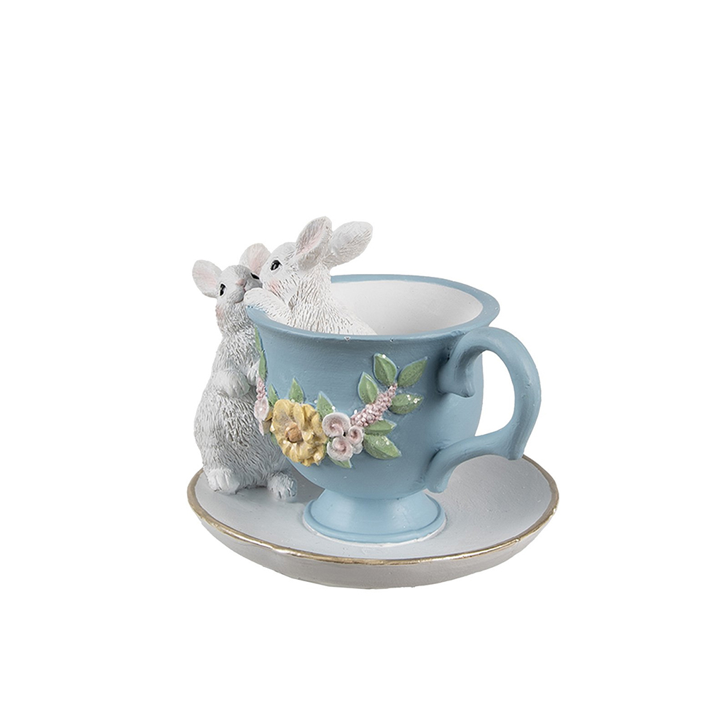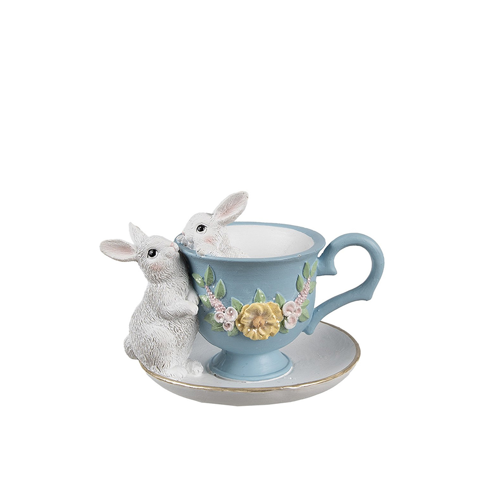 Dekoracija puodelis su kiškiu 13x16x12 cm velykinis Clayre
