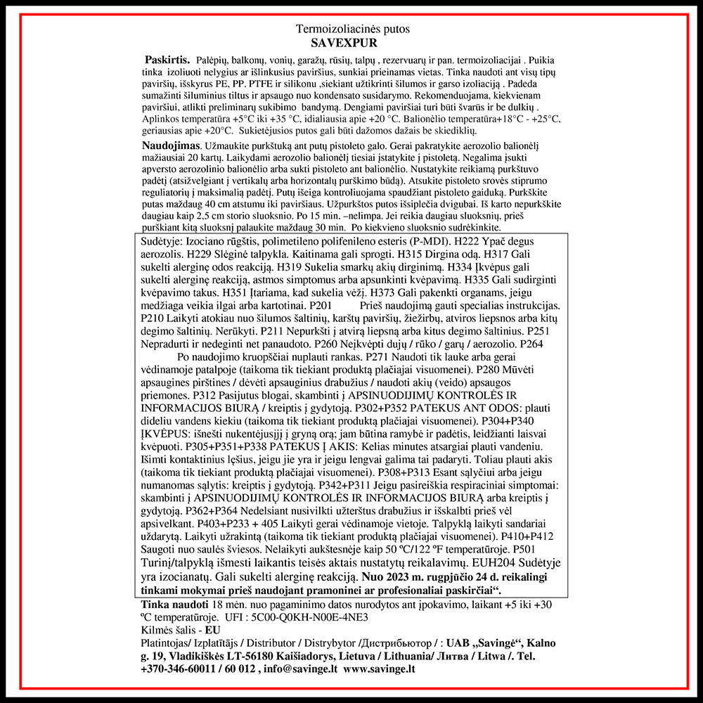 Paviršius turi būti švarus ir nuriebalintas . Dirbdami užsidėkite apsaugines pirštines ir akių apsaugą. . Pistoletą reikia tvirtinti laikant vožtuvų į viršų. Pritvirtinę pistoletą, gerai pakratykite balionėlį( maždaug 30 sekundžių). Esant mažam oro drėgnumui (mažiau nei 50% santykinei drėgmei), pagrindas turi būti sudrėkintas, nes putos plečiasi veikiamos drėgmės. Sudrėkinus paviršių gaunami geresni rezultatai. Ant kiekvienos termo-izoliacinės plokštės užpurkškite mažiausiai tris juostas. Užpurškę klijų palaukite 3-6 minutes ( ne daugiau 7 minučių), tada prispauskite plokštę prie sienos. Pritvirtintų plokščių paviršių galima lyginti atsargiai koreguojant 5 min nuo prispaudimo. Jei tarp izoliacinių plokščių yra tarpų, būtina juos užpildyti tais pačiais klijais. Pašalinkite klijų perteklių naudodami specialų valiklį arba acetoną . Sukietėjusius klijus saugokite nuo saulės spindulių.