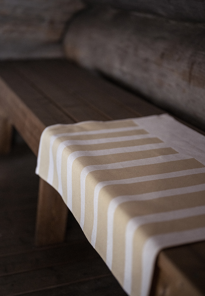 Vienvietis saunos sėdynės užtiesalas. „Laituri“ („Prieplauka“) – elegantiškas žakardinis raštas. Gamyboje panaudota tekstilės pramonės pertekline medvilnė. Dizainas – Anna Säteri.