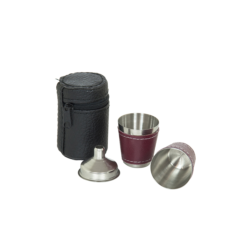 Taurelės metalinės su eko oda 4 vnt. + piltuvėlis KL10