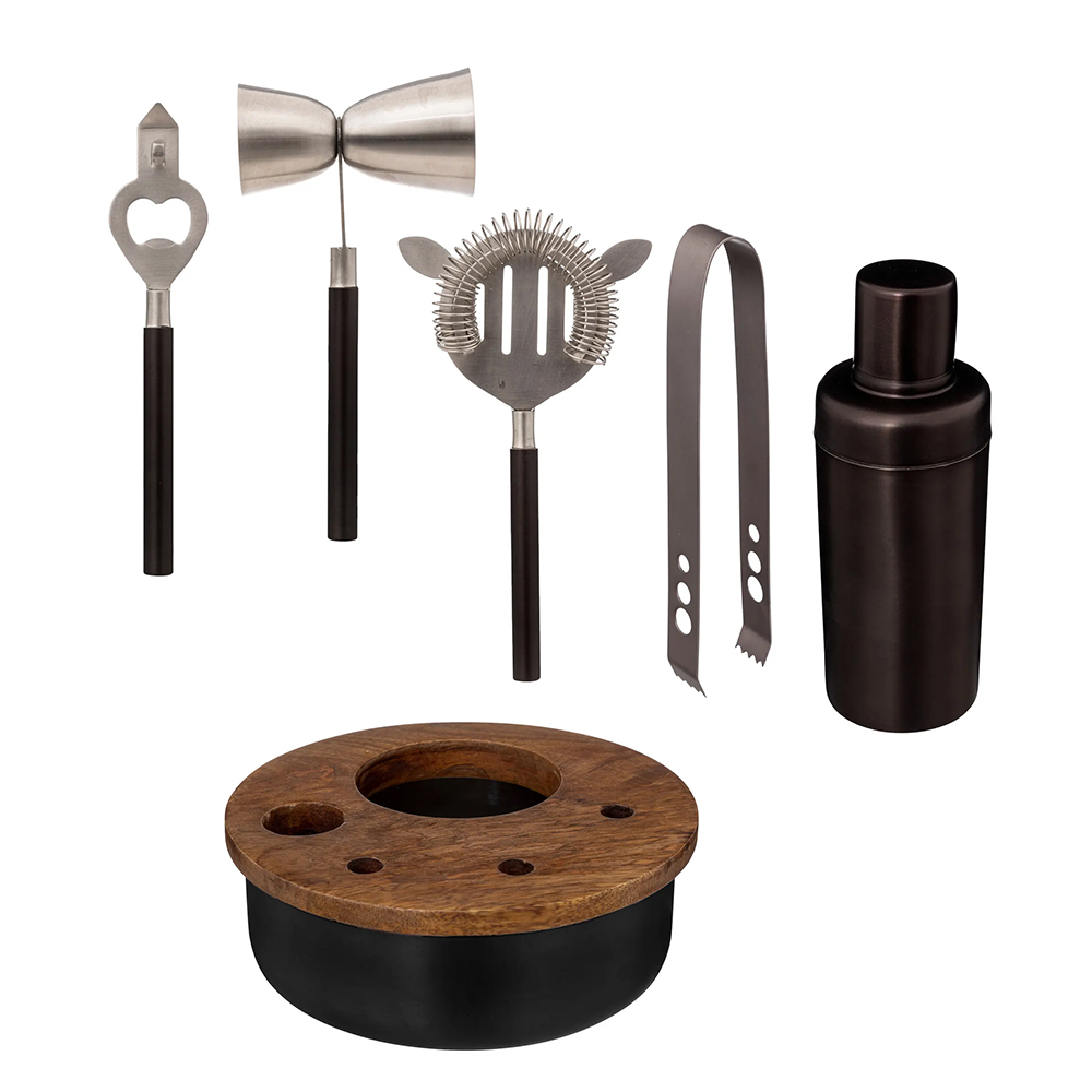 Su medienos kokteilių rinkiniu turėsite visus būtiniausius įrankius, kad nustebintumėte svečius profesionalios kokybės kokteiliais. Maišykite, matuokite, šaldykite ir patiekite savo unikalius gėrimus – nesvarbu, ar esate mixologijos ekspertas, ar tiesiog entuziastingas pradedantysis.