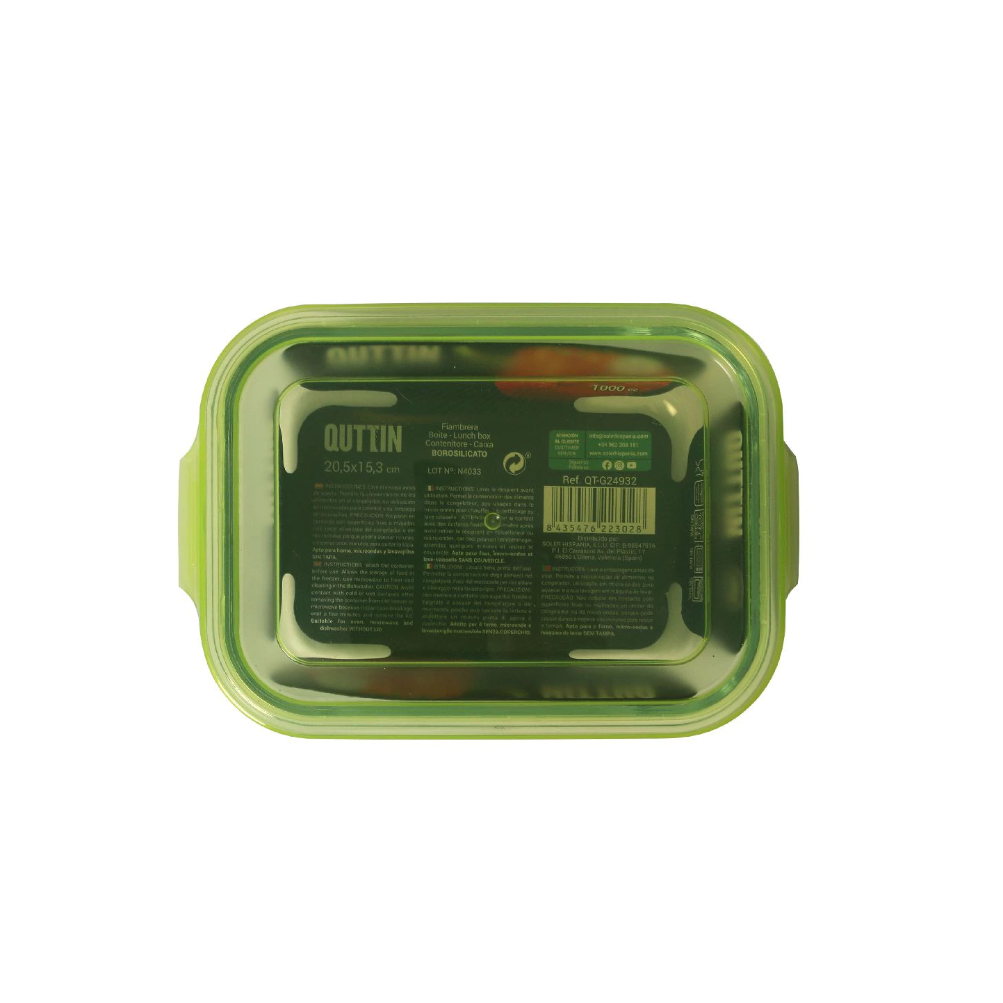 Dėžutė maistui su dangteliu stiklinė 1 l 20,5x15,3x6,9 cm Quttin QT-G24932