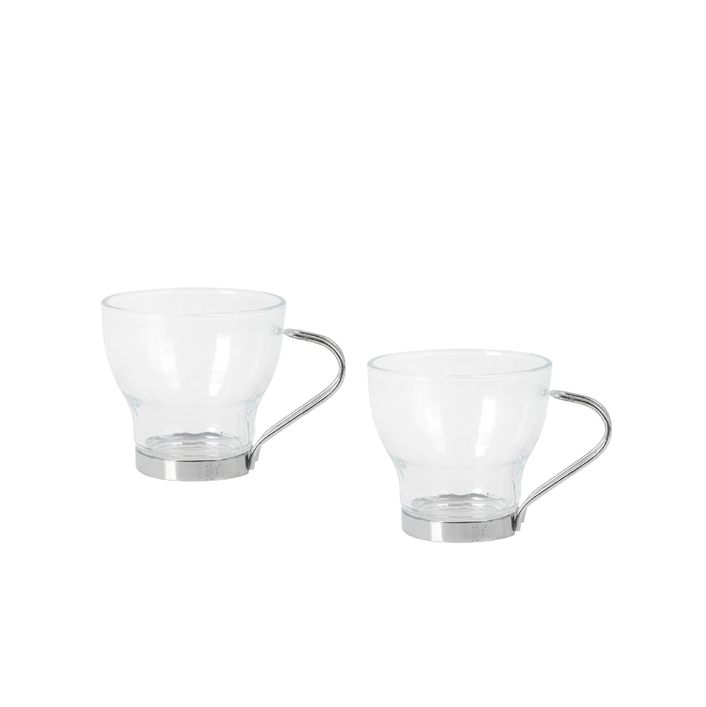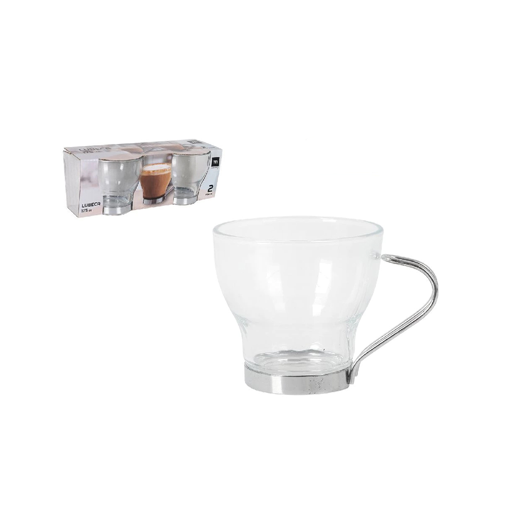 Puodeliai kavai 2 vnt 175 ml stikliniai su metaline rankena La Mediterranea