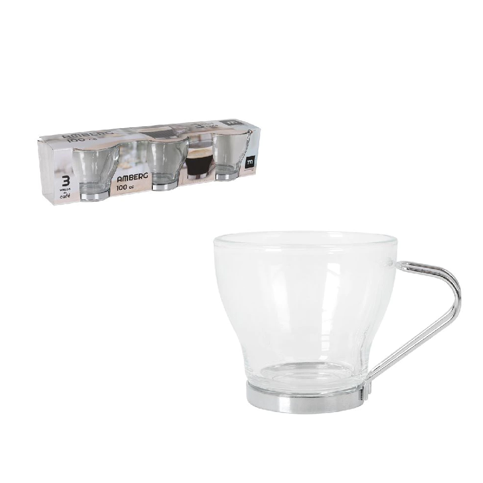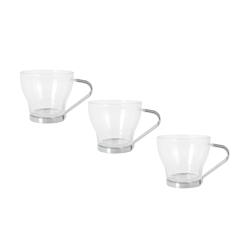 Puodeliai kavai 3 vnt 100 ml stikliniai su metaline rankena La Mediterranea