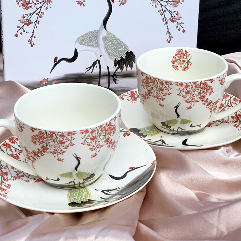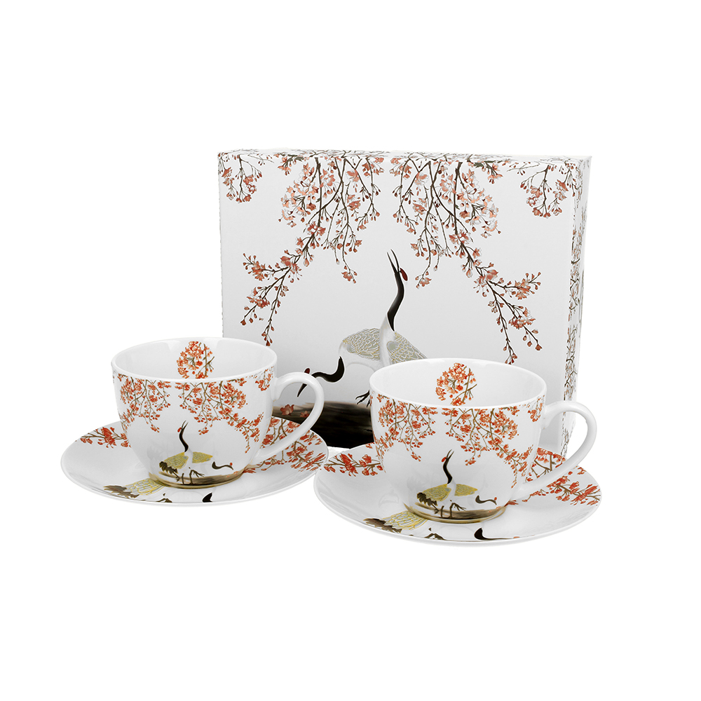 Puodeliai porcelianiniai 2 vnt. Sakura ir gervės 280 ml DUO