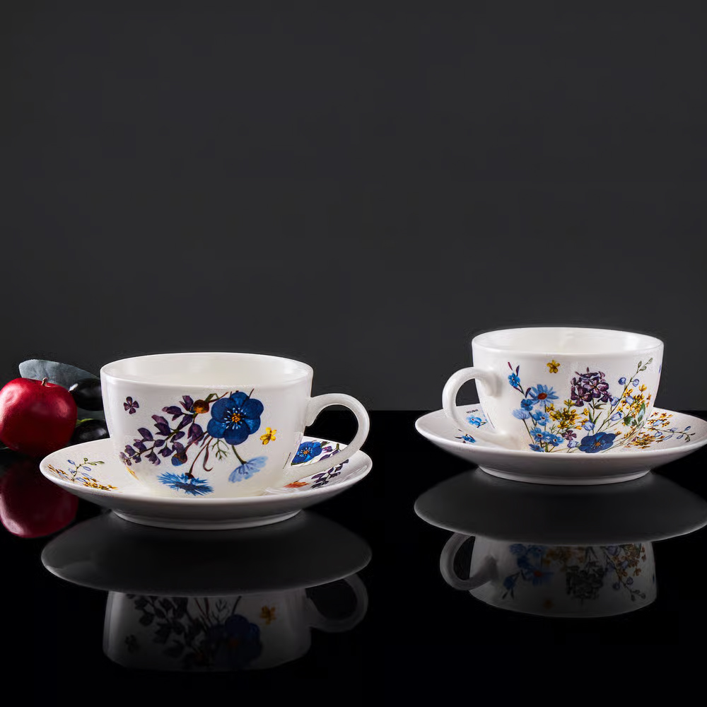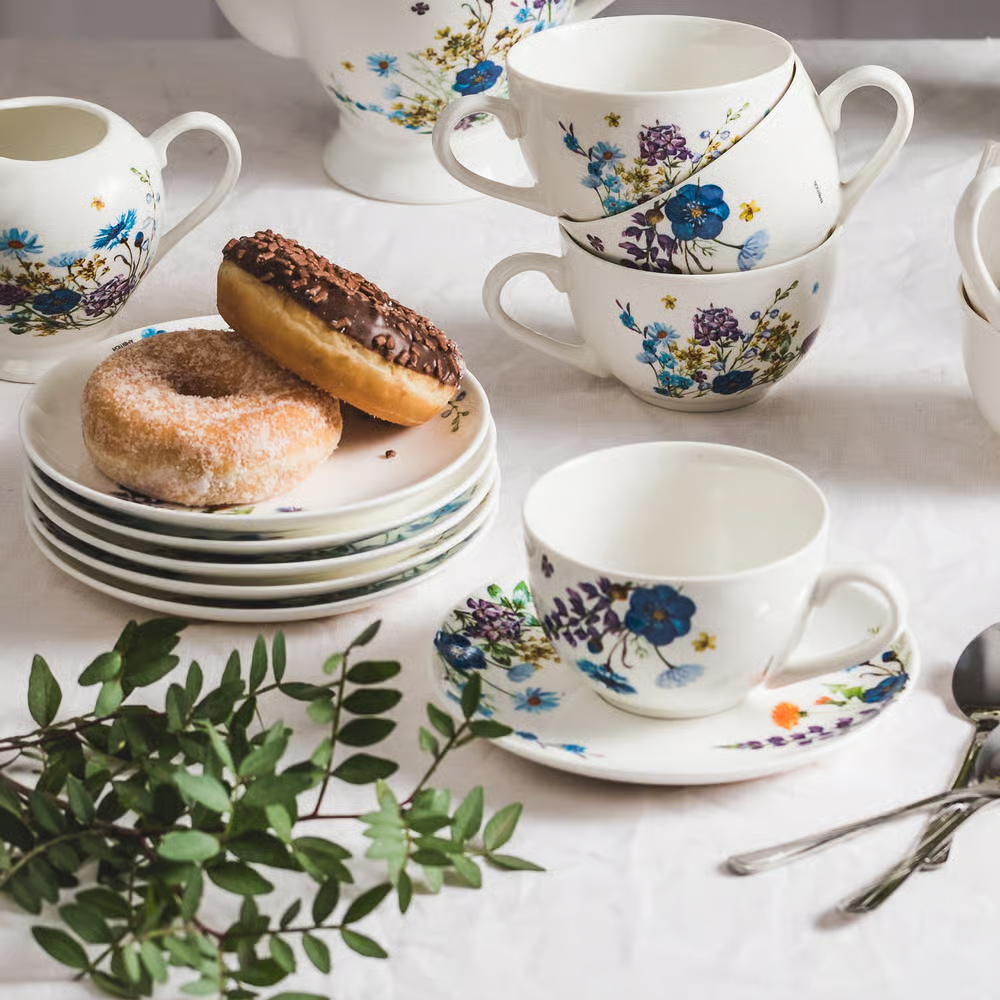 Elegantiškas kavos puodelių rinkinys „Fiori“ pagamintas iš aukštos kokybės porceliano, padengto glazūra, kuri užtikrina didesnį atsparumą įbrėžimams ir kasdieniam naudojimui. Puodeliai dekoruoti subtiliu laukinių gėlių raštu, o balta porceliano spalva su švelniais gėlių motyvais sukuria stilingą ir pavasarišką atmosferą.