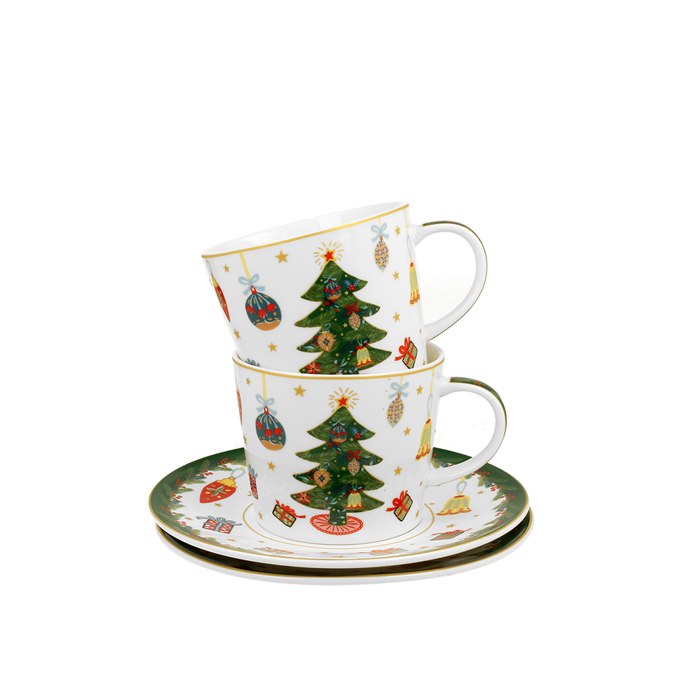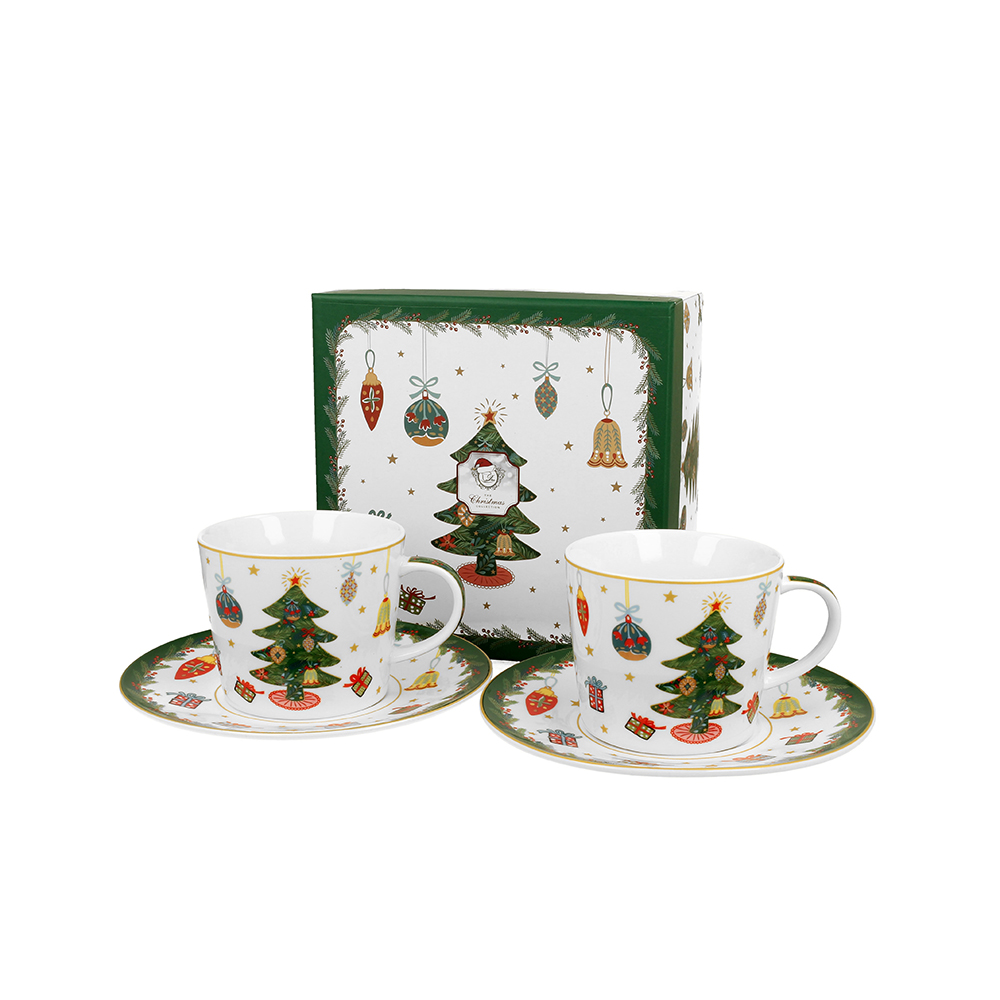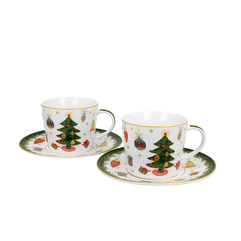 Puodeliai porcelianiniai su lėkštutėmis Eglutė 250 ml kld DUO