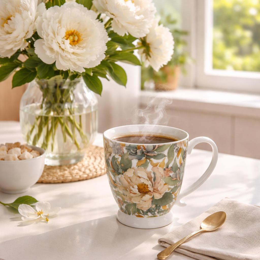 Puodelis porcelianinis Baltas bijūnas 510 ml DUO