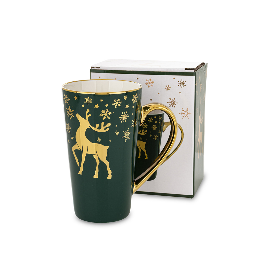 Puodelis porcelianinis žalias su elniu 15x13x9 cm KLD 171935