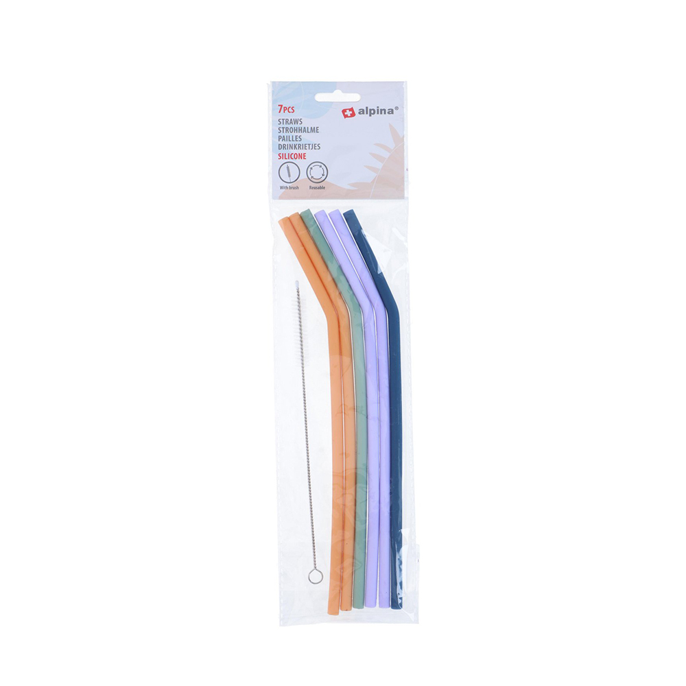 Šiaudeliai gėrimui silikoniniai su šepetėliu 7 vnt. ALPINA 871125250697