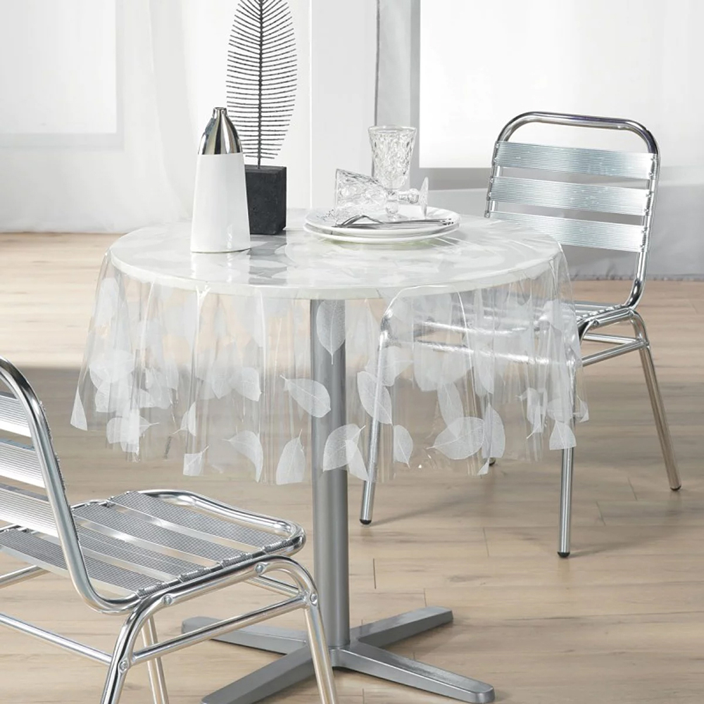 Staltiesė apvali D140 cm PVC skaidri su baltais lapais FEUILLE douceur d'intérie