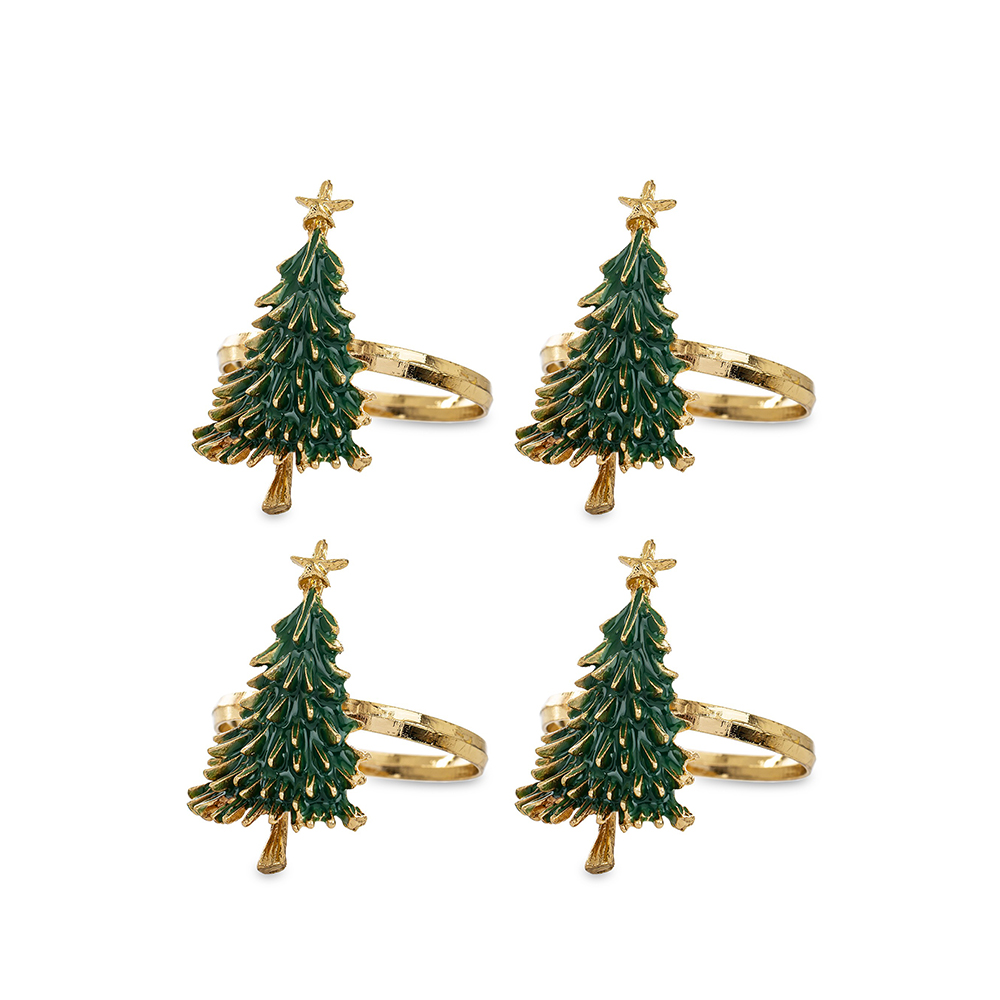 Žiedai servetėlėms 4 vnt. Eglutės aukso sp. 4,5x4,5x4,5 cm 181173 KLD