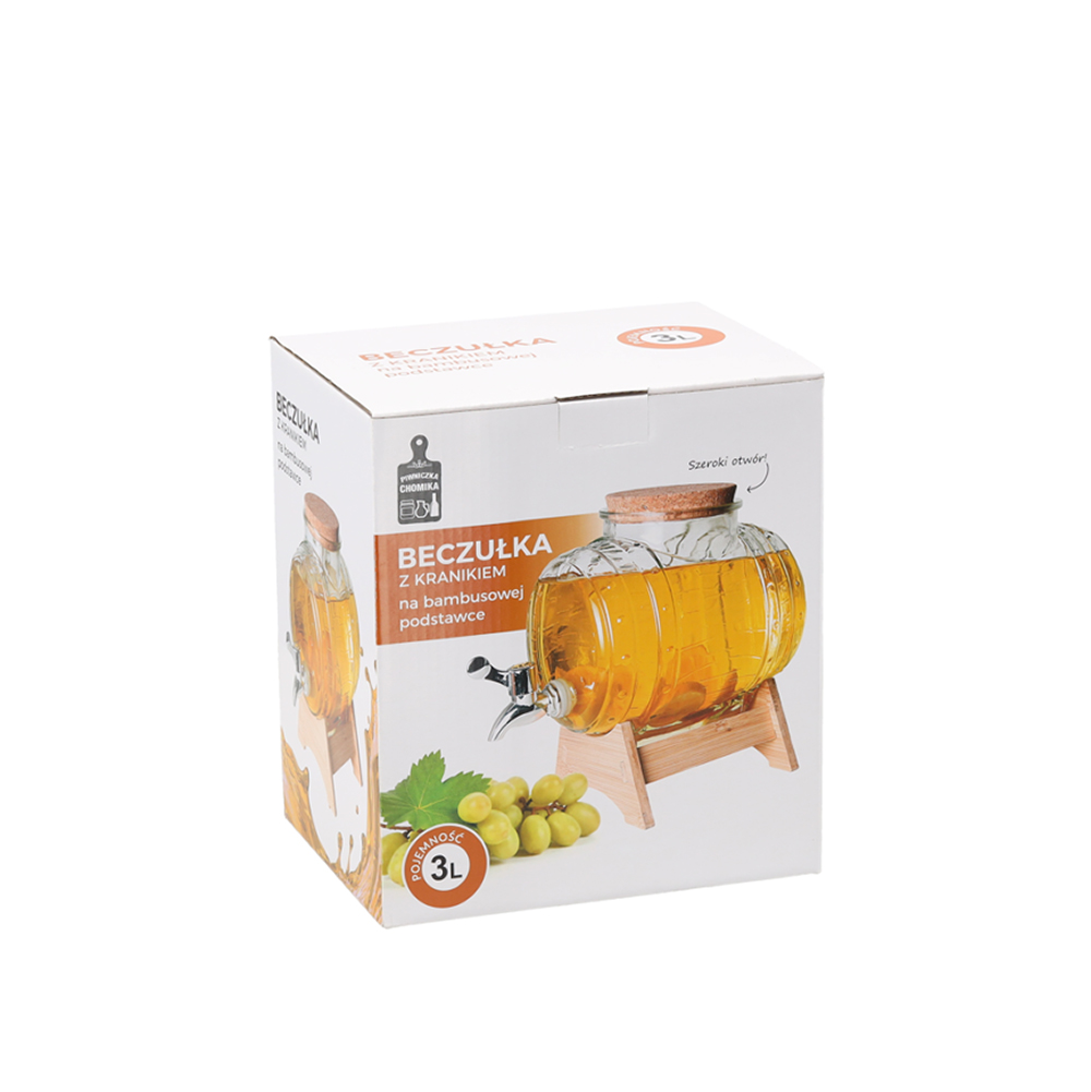 Indas stiklinis skysčiams su kraniuku ir stoveliu 3 L (statinaitė) ZIX1746