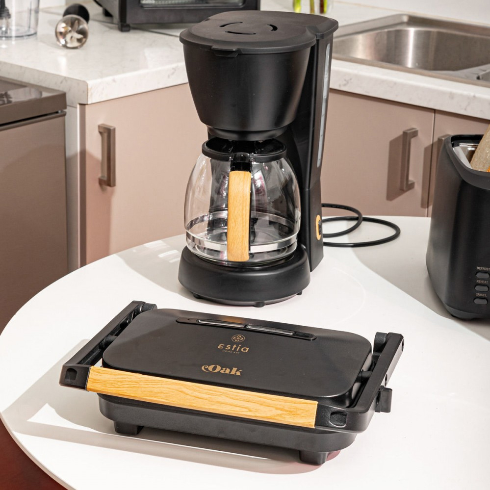 Kavos aparatas Oak derina efektyvumą ir stilių – 1000 W galia ir 1,25 litro talpa leidžia mėgautis turtinga ir aromatinga kava kiekvieną kartą. Su „stop flow“ funkcija ir nuimamu filtru gaminimas ir valymas tampa dar paprastesnis. Oak serijos elektros prietaisai apima įvairius prietaisus maisto ir pusryčių gamybai. Atnaujinkite kasdienybę stilingai ir funkcionaliai, įtraukdami modernų dizainą su juodos spalvos ir medžio detalėmis į savo erdvę