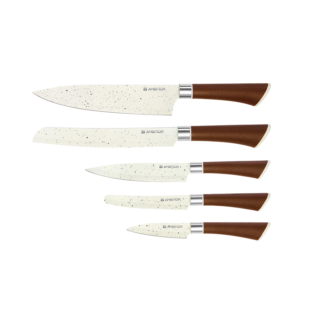 Peilių rinkinys 5 vnt su stovu NATURE balta/ruda sp. Ambition 51230