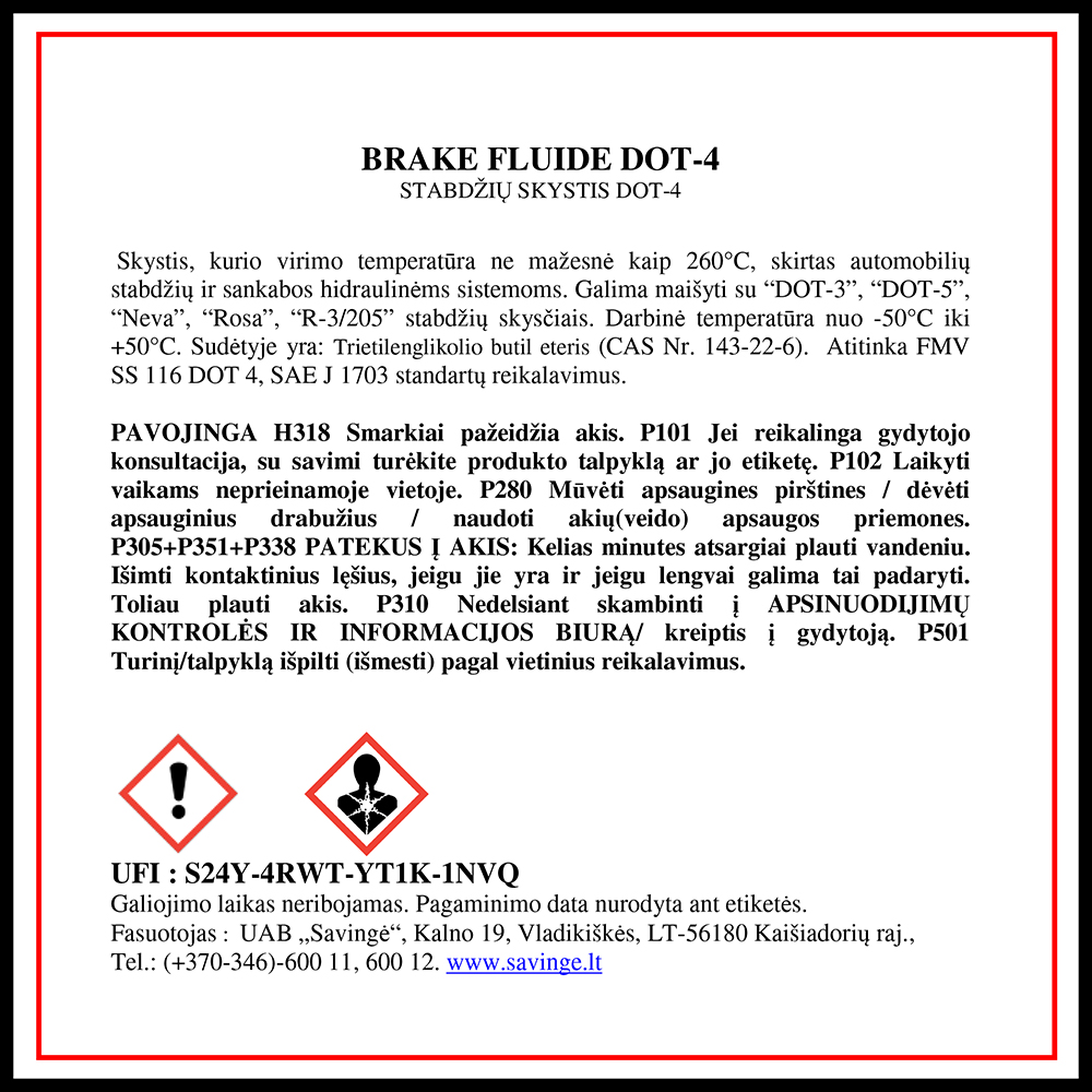 Stabdžių skystis DOT-4 0.5 kg SAVEX
