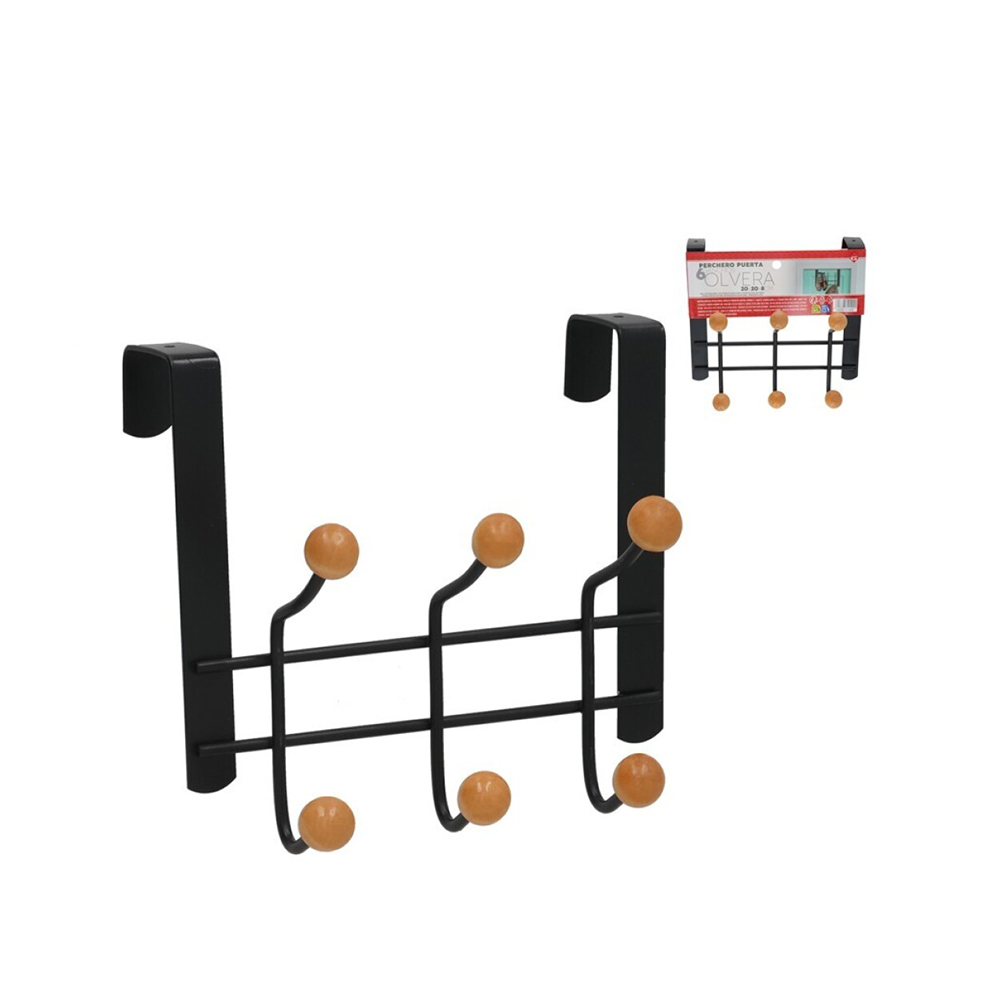 Kabykla 6 kabliai, kabinama ant durų juoda 20.5x20x8 cm metalinė 8445393541921