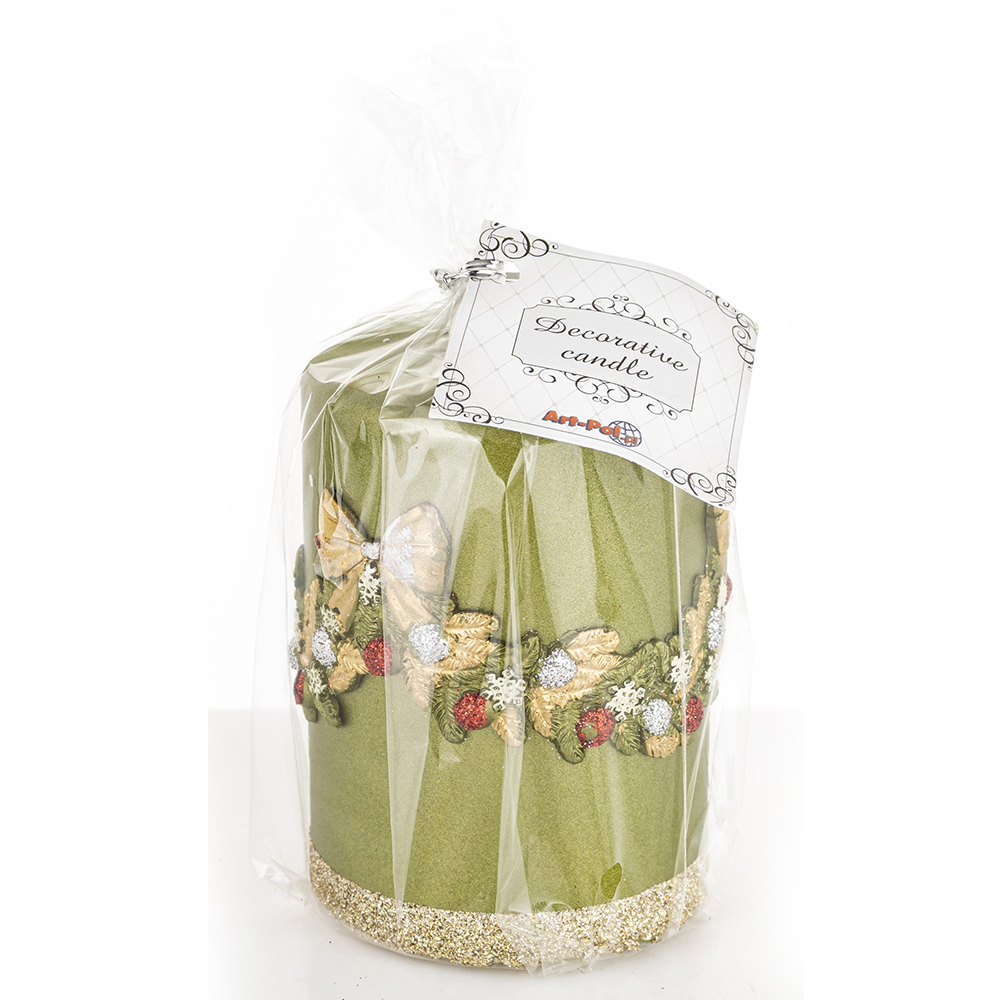 Žvakė su kalėdine aplikacija žalia 10x7x7 cm 182566 KLD