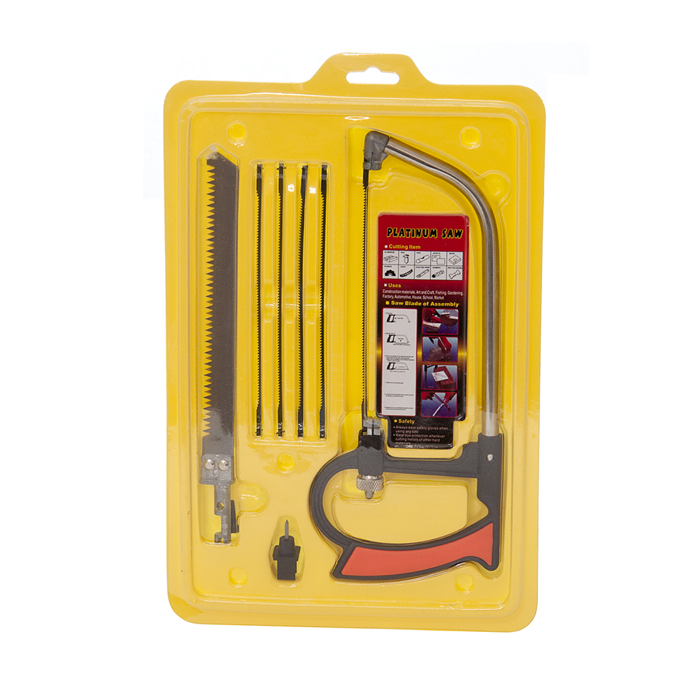 Rėmo skirto montuoti pjūkliukus ir pjūklelių rinkinys. Pagaminta iš plieninio vamzdžio su uždara plastikine rankena, saugančia ranką. Pjūkleliai platininiai. Naudojamas kruopštiems pjovimo darbams atlikti. Pjauti tinka metalinius, akrilinius, aliuminius, medžio ir kitus elementus.