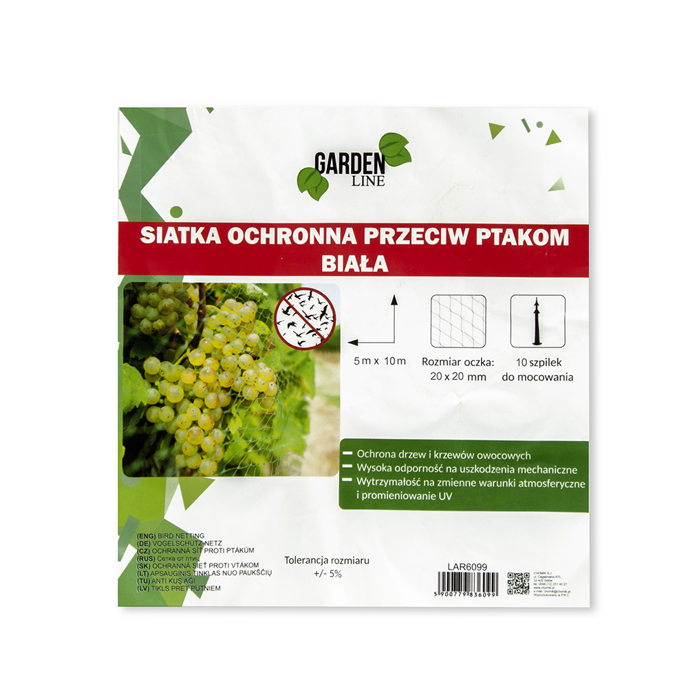 Tinklas apsaugai nuo paukščių baltas 5x10 m su 10 kaiščių LAR6136